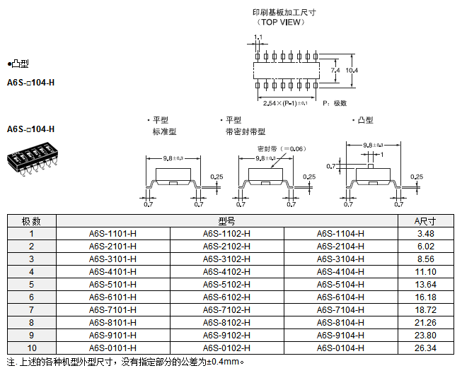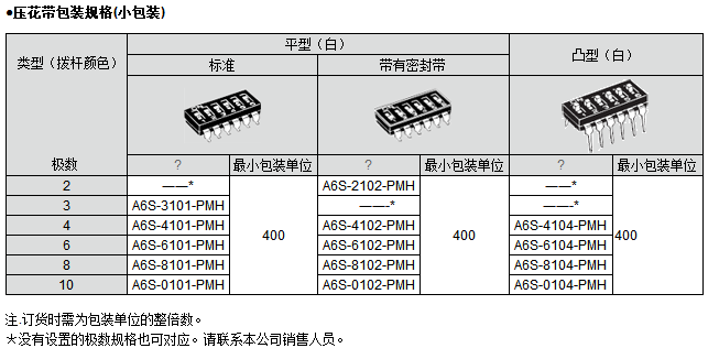 產品說明:A6S-H 滑動型DIP開關 更新了以往產品(A6S),提高了焊接耐熱性的表面安裝端子型。 ? 與以往產品(A6S)安裝互換,提高相同形狀的焊接耐熱性。(焊接最高溫度:260℃) ? 接點部分為鍍金雙接點,通過動作的自清潔構造,確保了高可靠性。 ? 備有可以清洗的帶密封帶型。 ? 有最適合自動安裝的壓花帶裝箱規格。(也對應...