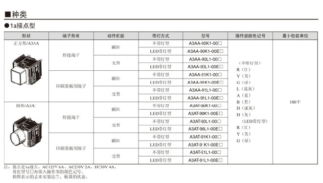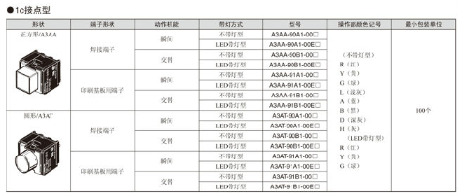A3AA-91K1-00R小型按鈕開關(小型方體型)