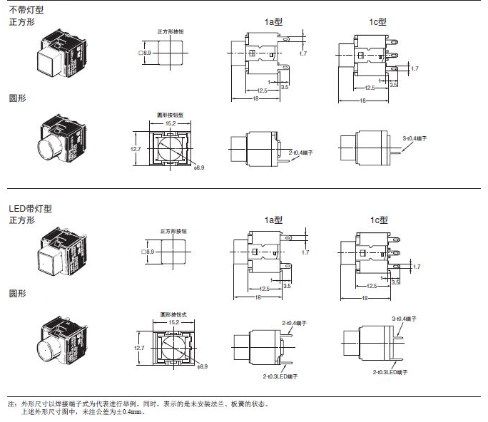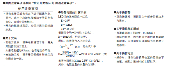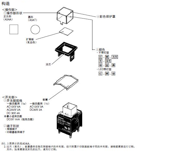 產品說明:大容量、緊湊型按鈕開關 ? 可作為大容量切斷電源開關使用。 ? 從微小負載(最小適用負載DC5V 1mA)到高容量負載都可開閉。