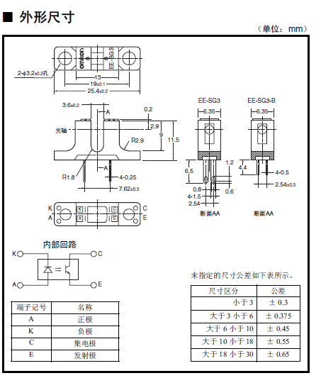 產品說明:微型光電傳感器[透過型] 為防塵構造。 焊接用端子型:EE-SG3。 印刷線路板用端子型:EE-SG3-B。