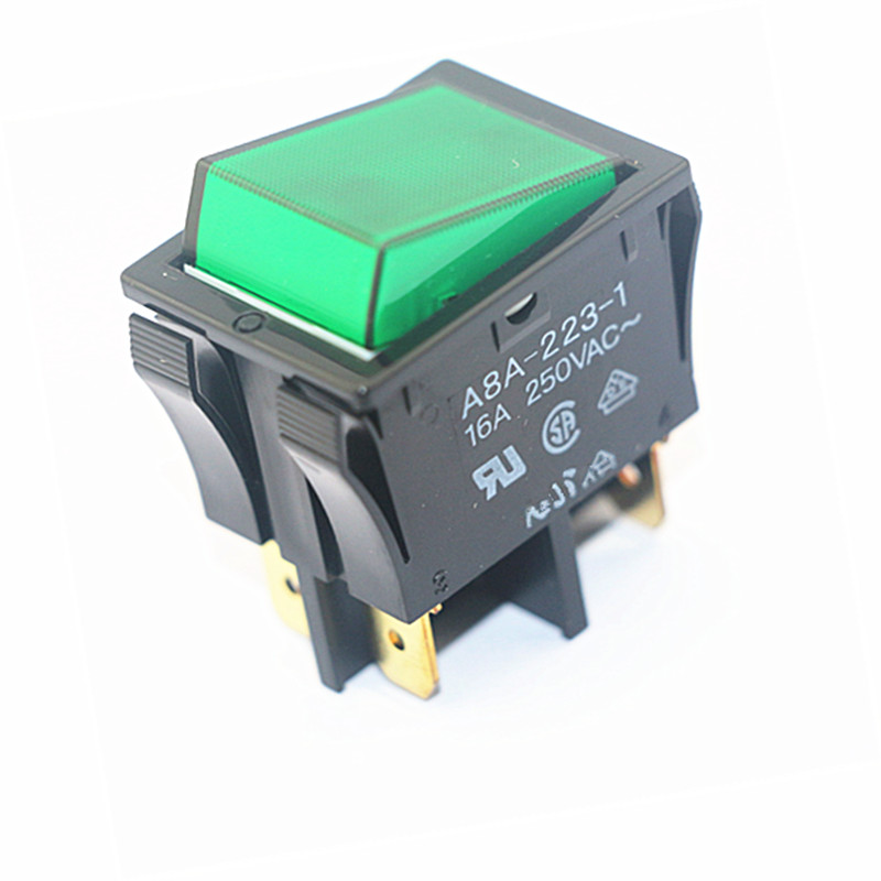 產品說明:A8A 船形開關 重視安全性的電源用船形開關 ? 舌簧機構減少發熱。 ? 強制分斷機構,即使在發生熔敷等故障 時,也能分斷觸點。 ? 備有可直接施加電源電壓的氖燈照光。 ? 接點間隙大于3mm。 ? 蓋帽和邊緣部備有各種類型及規格。 ? 取得UL、CSA、VDE標準認證。符合EN標準。