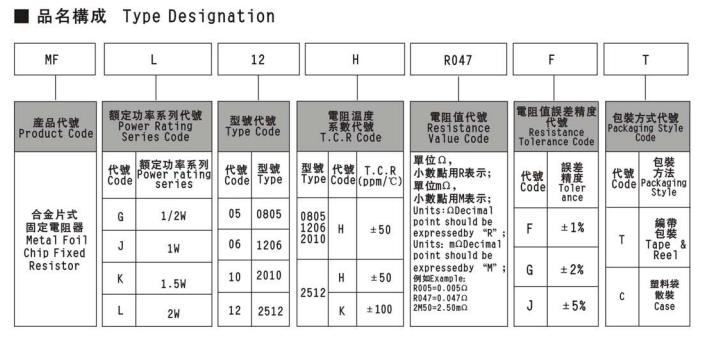 合金片式固定電阻器 MFJ12KR012FT