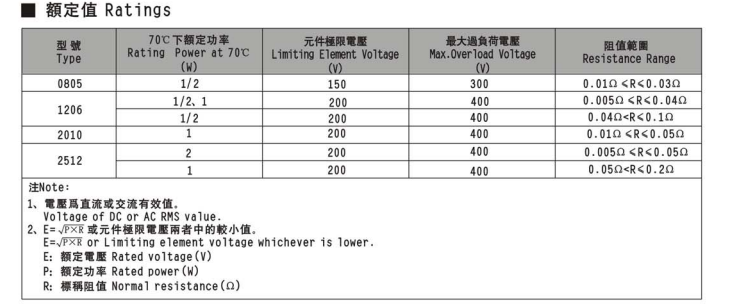 產品說明:尺寸: 2512 電阻: 5mΩ~50mΩ 誤差: ±1% 功率: 1W