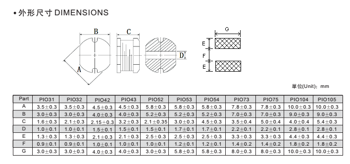 特征: 多種不同尺寸結構適合高密度表面貼裝。