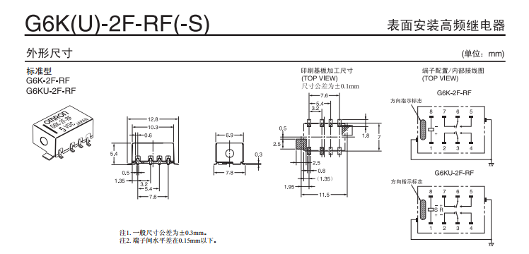 G6K(U)-2F-RF(-S、-T) 表面安裝高頻繼電器