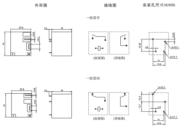 · 印制板式引出腳,觸點快連接式引出