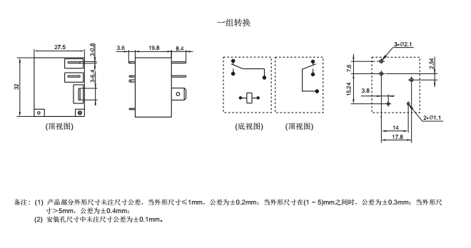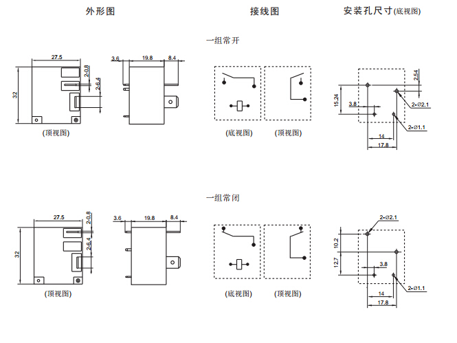 · 具有一組常開、常閉、轉(zhuǎn)換觸點形式