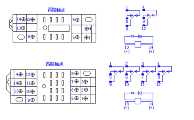 常用小型繼電器原理及底座接線圖 常用小型繼電器原理及底座接線圖 常用小型繼電器有直流式和交流式,其外形一樣,其觸點一般為兩組常開兩組常閉或四組常開四組常閉,對應的插座也比較統一,但有時印刷的號... [查看詳細]