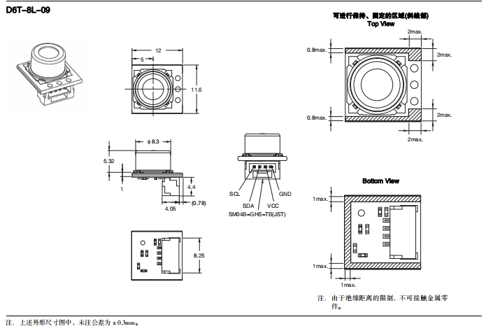 歐姆龍MEMS非接觸溫度傳感器 	D6T-8L-09