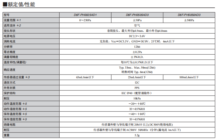 歐姆龍D6F-PH0505AD3 MEMS差壓傳感器