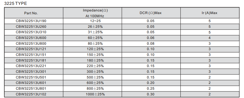 CBW322513U601T大電流磁珠