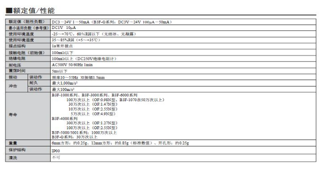 產品說明:B3F 輕觸式開關 基板插入安裝型,6mm方形、12mm方形及橫向操作型、鍍金接點、徑向帶裝型等,品種齊全 ? 實現輕快的按觸感及高壽命 ? 備有可用于通用的徑向帶狀部件插入機的帶狀規格 ? 備有可以在長時間內保持穩定接觸和絕緣的鍍金型。 ? 凸型頂塊上可以安裝鍵頂(B32系列)。