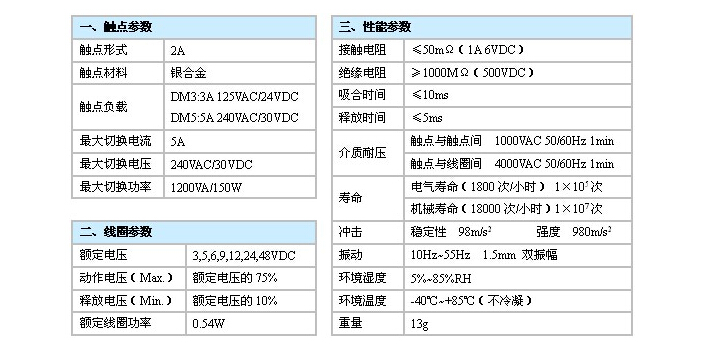 觸點(diǎn)容量:DM3:3A 125VAC/24VDC DM5:5A 240VAC/30VDC