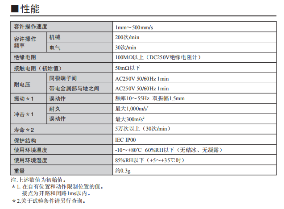 2.歐姆龍超小型(高6寬8X深4.2mm)、輕量(約0.3g)、3mm的長(zhǎng)行程。