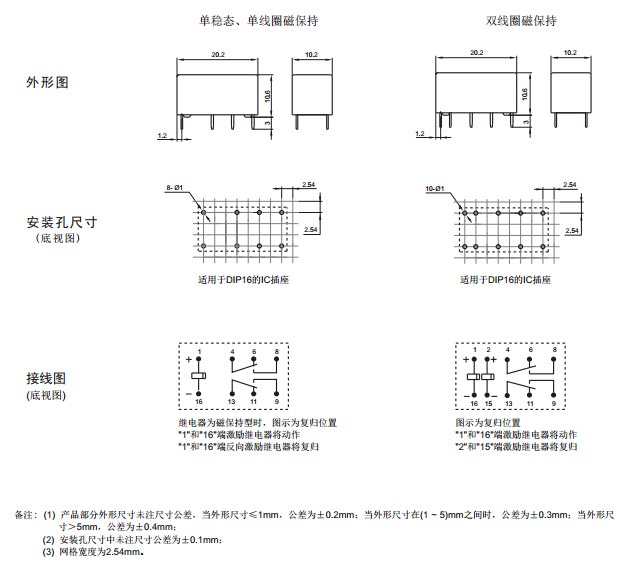 單穩(wěn)態(tài)、雙線圈磁保持: 0.15W, 0.2W