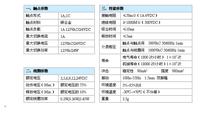 觸點(diǎn)容量:1A 125VAC/24VDC